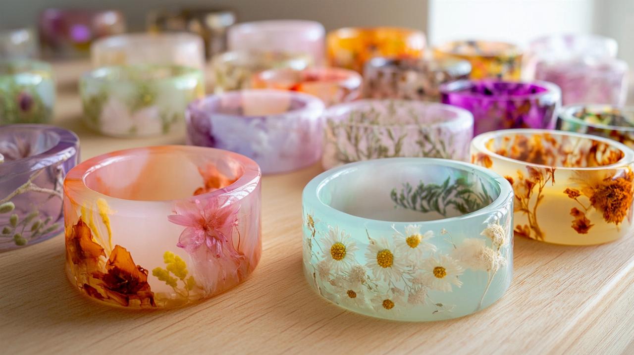 L'un des atouts majeurs de la résine réside dans sa capacité à encapsuler des éléments naturels ou décoratifs pour créer des bijoux véritablement personnalisés. Les fleurs séchées constituent l'inclusion la plus populaire et apportent une touche romantique et délicate à chaque création. Cette tendance connaît actuellement un succès considérable auprès des amateurs de bijoux en résine qui apprécient l'alliance entre nature et modernité. Le sable, les coquillages ou les paillettes peuvent également être intégrés pour créer des effets visuels surprenants, notamment avec les bracelets à effet mer qui évoquent les teintes bleues de l'océan. Les inclusions personnalisées, comme des inscriptions ou des objets symboliques, permettent de transformer un simple accessoire en véritable porte-bonheur chargé de sens. L'effet terrazzo, inspiré des sols vénitiens traditionnels, séduit par son aspect moderne et son caractère graphique. Pour les créations les plus audacieuses, les pigments fluorescents offrent un rendu spectaculaire qui ne passe jamais inaperçu. Chaque inclusion raconte une histoire et confère au bracelet une dimension unique que les bijoux de production industrielle ne peuvent égaler. La résine UV se révèle particulièrement adaptée pour mettre en valeur ces éléments incorporés grâce à ses propriétés cristallines exceptionnelles.